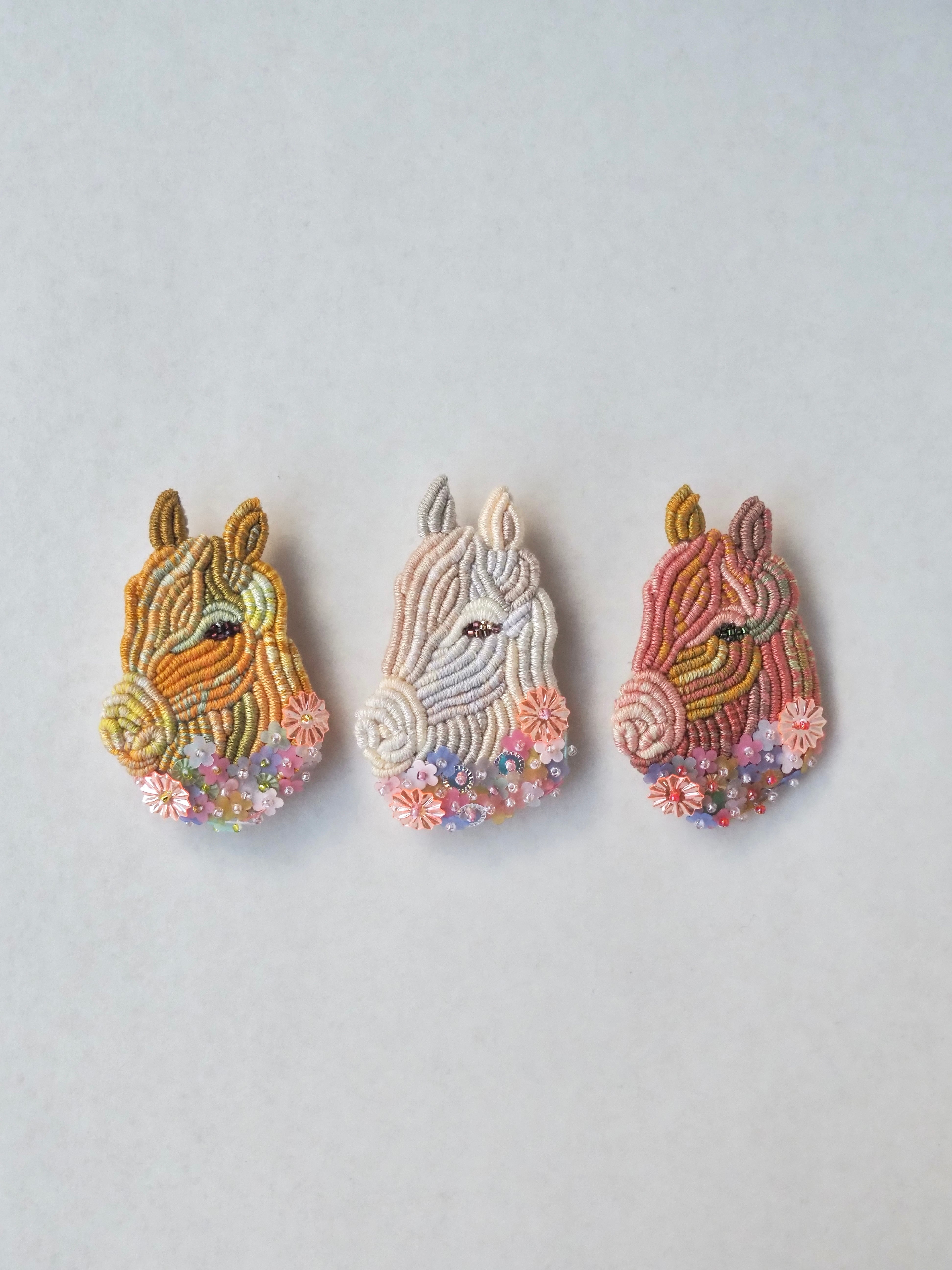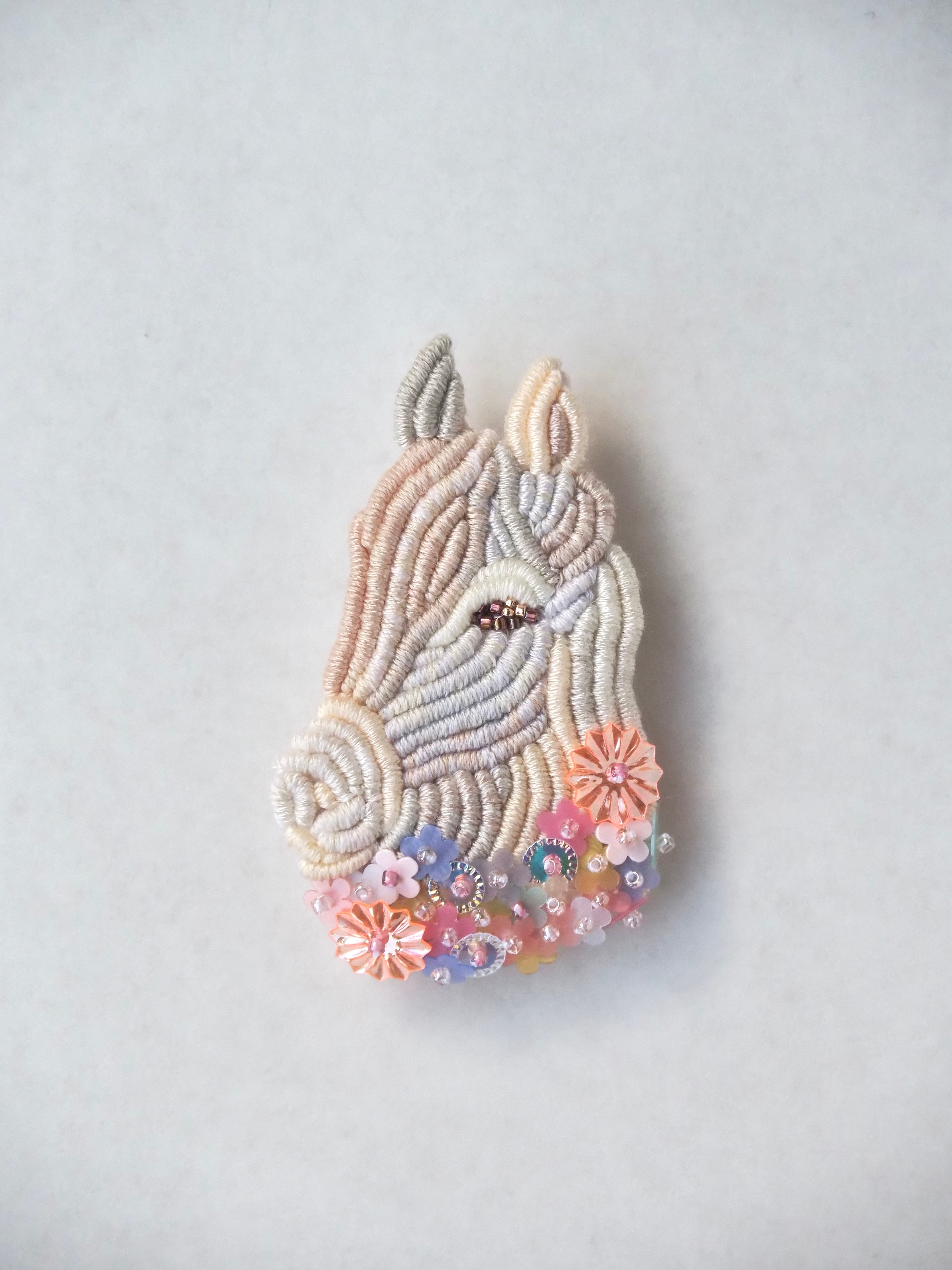 バリオンステッチ刺繍の馬のブローチです。